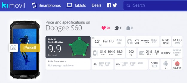 Сколько баллов может получить прочный телефон в бенчмарке Antutu?Должно быть, вы видели, что многие производители мобильных телефонов публикуют оценки своих смартфонов в бенчмарке ANTUTU, и большинство флагманских смартфонов получают хороший результат. Но когда речь идет о прочном телефоне, сколько баллов можно считать достаточным? В этой новости нами опубликованы результаты ANTUTU прочного телефона от DOOGEE. На скриншоте ниже показано, что смартфон набрал 61000 баллов в ANTUTU. Согласно информации от DOOGEE, S60 работает на процессоре MTK P25, который славится хорошим балансом между производительностью и энергосбережением. По сравнению с другими прочными телефонами, такими как Samsung X cover и Cat S60, DOOGEE S60, очевидно, более совершенен в плане аппаратной конфигурации. Мы проверили сайт сравнения смартфонов, который фокусируется на поиске подходящего смартфона для клиента. Вы можете подтвердить эту информацию сами непосредственно на kimovil.