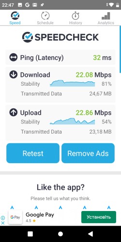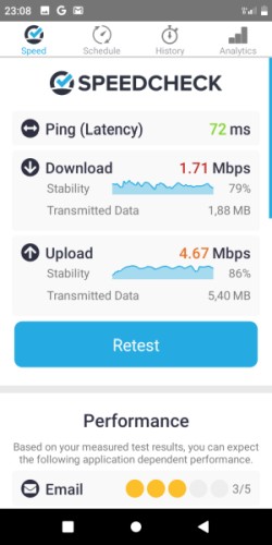 Один нюанс. Для просмотра видео онлайн, в том числе и Youtube, и прослушивания музыки через сервисы подписки 24/7 нужна стабильная работа антенн в мобильном гаджете. Пусть он будет не с флагманским процессором, но его сетевая составляющая должна ловить сигнал и обрабатывать данные без ошибок (с допустимой избыточностью) от оператора и домашнего/офисного Wi-Fi роутера. Редакция Smartphone.ua предлагает проверить, насколько Neffos A5 подходит для выше озвученных целей. Замерять скорость будем через приложение Speedcheck спидтест. Почему выбрали именно его? Есть три обоснованных аргумента: