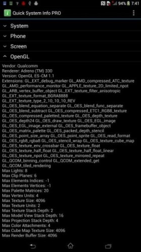 Скриншоты информируют о том, что Sony Xperia Z Ultra будет оснащен 4-ядерным процессором Qualcomm Snapdragon 800 MSM8974 с тактовой частотой 2.2 ГГц и графикой Adreno 330, 2 ГБ оперативной памяти и 16 ГБ встроенной, слотом для карт памяти формата microSD. А также то, что работает новинка под управлением операционной системы Android 4.2.2 Jelly Bean.