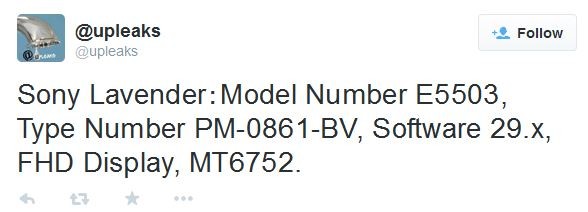 Слухи: Sony готовит смартфон с 64-битным 8-ядерным чипом MediaTekИскатель утечек @UpLeaks поделился с миром информацией о еще неанонсированном смартфоне компании Sony, принадлежащем к среднему сегменту. Новинка под кодовым названием Lavender, номер модели E5503, как сообщает источник, получит от производителя дисплей с разрешением 1920х1080 пикселей, 64-разрядный 8-ядерный процессор MediaTek MT6752 с тактовой частотой 1.7 ГГц и графикой Mali-T760, а также поддержку высокоскоростных 4G LTE-сетей.
