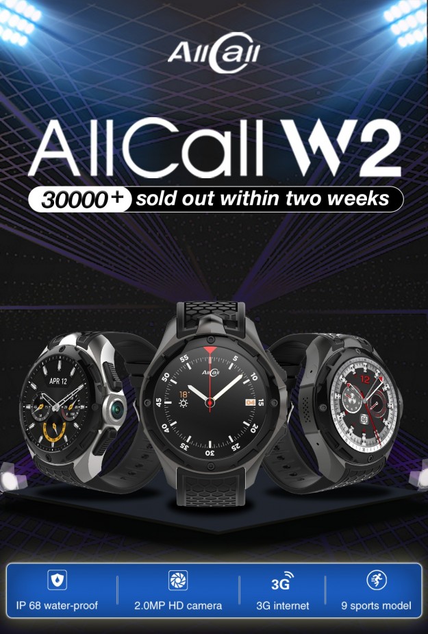 Смарт-часы AllCall W2 – продано более 30,000 экземпляров в период предпродажиAllCall отчиталась о своих последних достижениях. Факты говорят о том, что более 30.000 смарт-часов W2 (с защитой IP68) были распроданы в течение двух недель, что является довольно неожиданным результатом даже для производителя. А значит AllCall W2 получил одобрение покупателей, так же как и их предшественник - AllCall W1. Скорее всего это связано с возможностями AllCall W2.