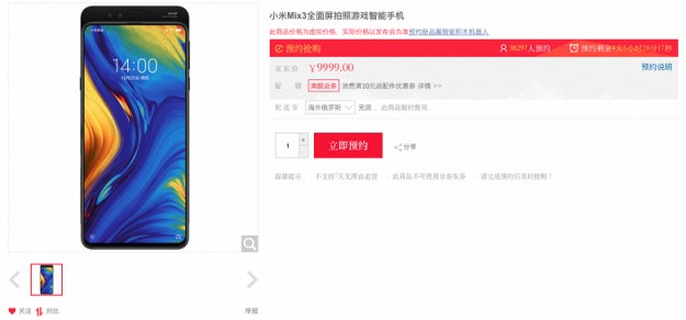 Смартфон-слайдер Xiaomi Mi Mix 3 появился у крупного онлайн-ритейлераВсё ближе день анонса флагманского смартфона Xiaomi Mi Mix 3 и вот модель стала доступна для предварительного заказа в крупном китайском онлайн-магазине JD.