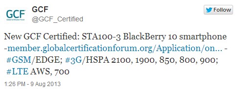 Смартфон BlackBerry Z30 получил сертификат GCFКомпания BlackBerry сделала еще один шаг на пути к официальной презентации смартфона BlackBerry Z30, ранее известного под кодовым названием BlackBerry A10. Высококлассное устройство с номером модели STA100-3 под управлением ОС BlackBerry 10 уже получило сертификат Глобального Сертификационного Форума (GCF).
