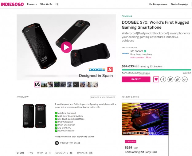 Смартфон DOOGEE S70 стал очень успешным на Indiegogo
