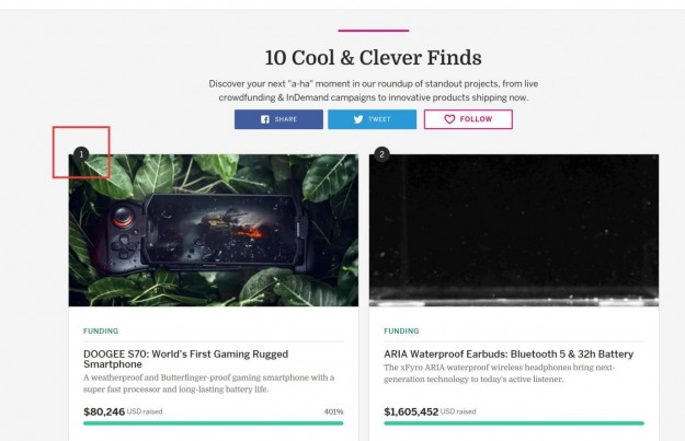 Игровой мир настроен на революцию с появлением Doogee S70. Удивительные функции и преимущества телефона, особенно любителям мобильных и компьютерных энтузиастов, в целом, заслужили звание «первого в мире прочного игрового смартфона». Уникальность телефона была подтверждена полученным медиа-сопровождением. Бренд набрал 470% средств от поставленной задачи в размере 20 000 долл. США.