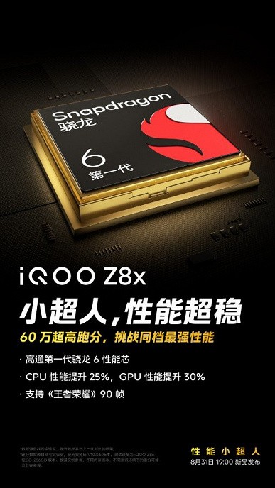 Смартфон iQOO Z8x: сочетание современнейшей экономичной платформы Qualcomm и огромного аккумулятораУже завтра бренд iQOO представит парочку новых смартфонов, а сегодня появились постеры, раскрывающие некоторые параметры младшей модели Z8x.