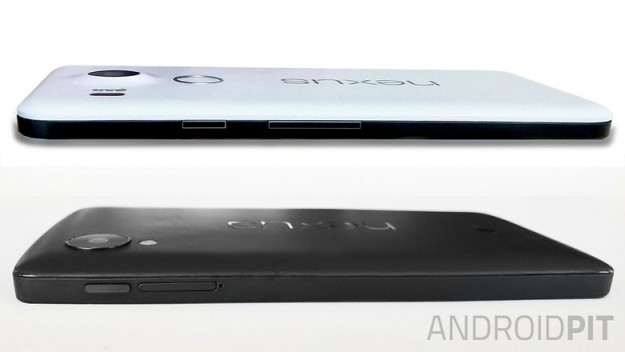 Смартфон LG Nexus 5 (2015) сравнили с Nexus 5 (2014)В Сети опубликовали новое "живое" фото смартфона LG Nexus 5 (2015). В этот раз снимок демонстрирует будущую совместную новинку Google и LG в сравнении с моделью Nexus 5 2014-го года. Судя по снимку, Nexus 5 (2015) будет тоньше предыдущей модели. На его правой боковой грани видны кнопка питания и клавиша регулировки громкости, а на тыльной панели сканер отпечатков пальцев, лазерный автофокус и существенно выступающий над поверхностью корпуса объектив основной камеры.
