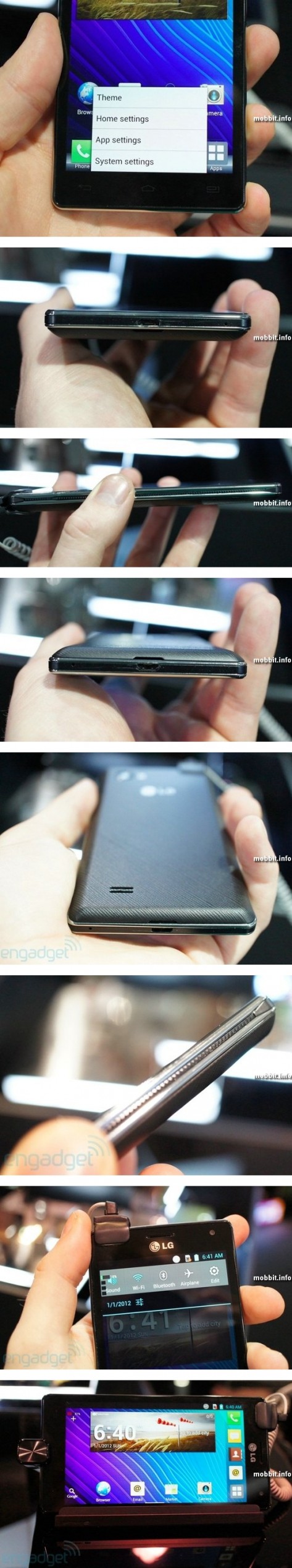 На днях мы писали о том, что LG представила свой первый четырехъядерный смартфон – Optimus 4X HD. А сегодня мы уже можем предложить вам живые фото и видео (далее) этого выдающегося аппарата. Напомним, что модель оснащена 4,7-дюймовым True HD ЖК-дисплеем на IPS-матрице с разрешением 1280x720, четырехъядерным процессором Tegra 3 (1,5 ГГц), 16 ГБ памяти, 8 Мп камерой с LED-вспышкой, батареей на 2140 мАч, ОС Ice Cream Sandwich. Толщина девайса составляет 8,9 мм.