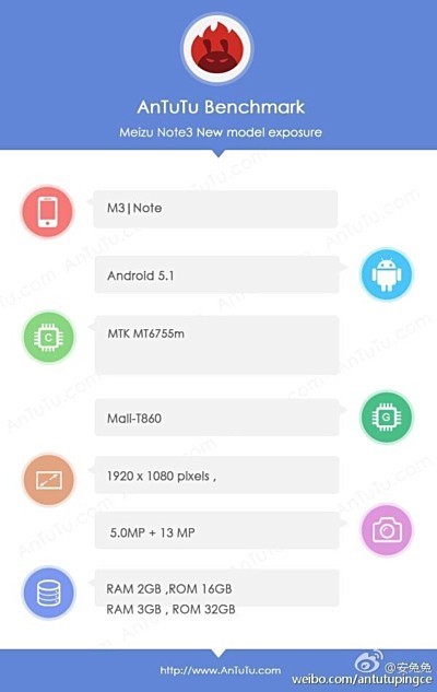 Смартфон Meizu M3 Note "засветился" в бенчмарке AnTuTuЕще официально не представленный смартфон Meizu M3 Note прошел тестирование производительности в популярном бенчмарке AnTuTu. По данным тестера, гаджет работает на базе 8-ядерного процессора MediaTek MTK6755M Helio P10 с тактовой частотой 2 ГГц и графическим чипом Mali-T860 MP2.