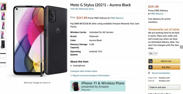 Смартфон Moto G Stylus (2021) со стилусом показался на Amazon раньше времени