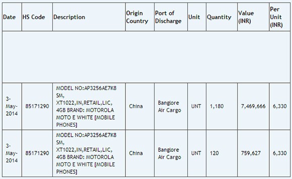 Смартфон Motorola Moto E получит ценник в $105В базе данных индийского логистического веб-сайта Zauba был замечен не представленный еще официально смартфон Motorola Moto E с ценником в $105.