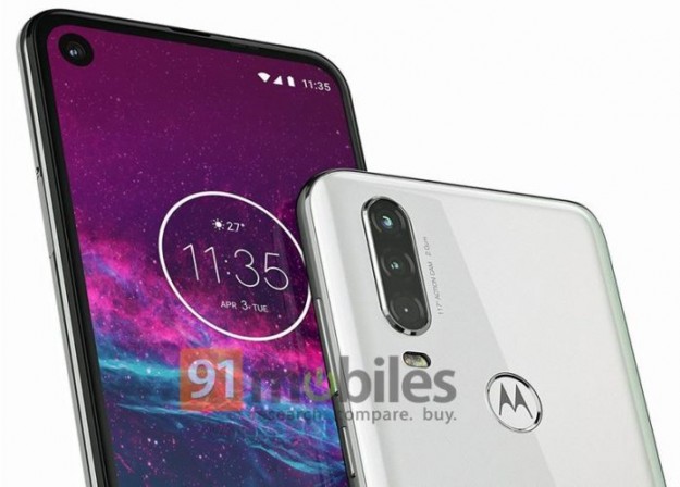 Смартфон Motorola One Action позирует на официальном рендере с врезанной фронтальной камерой и тройной основной