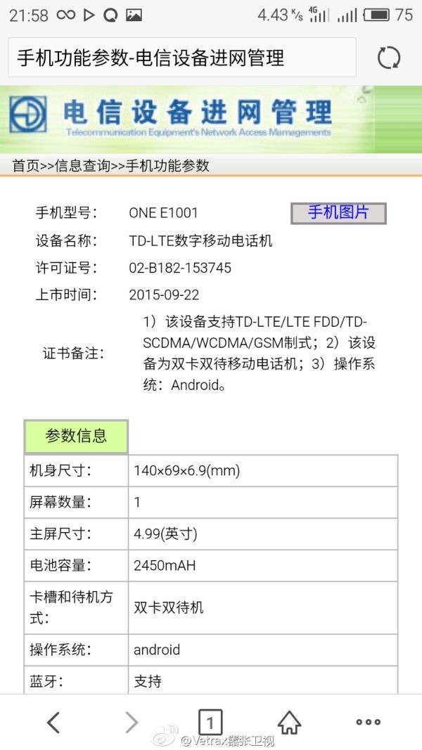 Смартфон OnePlus X получил сертификат TENAAВ базе данных китайской сертификационной организации был замечен не представленный еще официально смартфон OnePlus X. Помимо изображений новинки, демонстрирующих ее в черном цвете корпуса, TENAA обнародовал также ее спецификации.