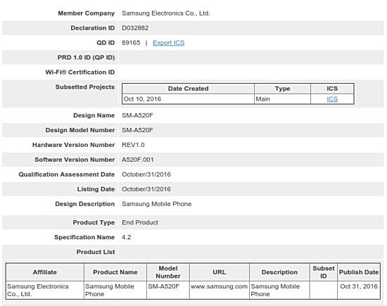 Смартфон Samsung Galaxy A5 (2017) прошел Bluetooth-сертификациюВслед за Samsung Galaxy A3 (2017) сертификацию в организации Bluetooth Special Interest Group (SIG) прошел смартфон Galaxy A5 (2017), что свидетельствует о том, что официальный анонс и этой модели южнокорейского производителя не за горами.