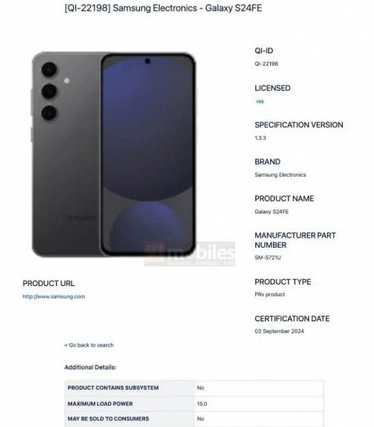 Смартфон Samsung Galaxy S24 FE показали на новому рендеріУ базі галузевої організації Wireless Power Consortium з'явилася картка поки що не представленого смартфона Samsung Galaxy S24 FE. Таким чином підтверджено каталожний номер пристрою - SM-S721U, і його дизайн. Як видно, в плані зовнішнього вигляду Galaxy S24 FE навряд чи можна відрізнити від Galaxy S24.