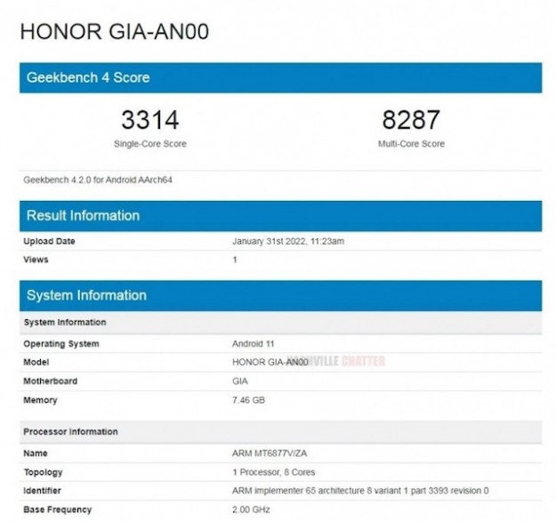 Смартфон среднего уровня Honor 60 SE получит чип MediaTek Dimensity 900В декабре прошлого года Honor представила продвинутые смартфоны среднего класса Honor 60 и 60 Pro. Согласно свежим данным, в скором времени компанию им составит более доступный Honor 60 SE. Устройство засветилось в Geekbench с номером модели GIA-AN00, благодаря чему стали известны его ключевые характеристики. Несмотря на то, что Android 12 присутствует на рынке уже некоторое время, и ведущие производители уже обновили свои смартфоны до актуальной ОС, Honor 60 SE был протестирован с позапрошлогодней Android 11. Тем не менее, финальная версия устройства может быть представлена с актуальной Android 12.