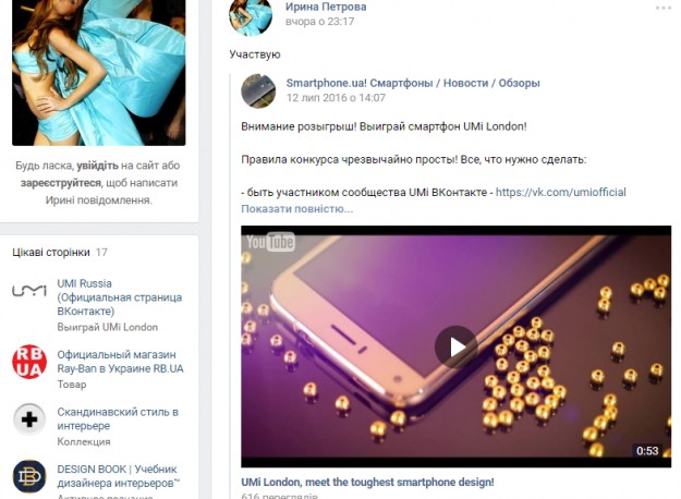 Смартфон UMi London нашел своего владельца!Мы рады сообщить Вам, что победителем конкурса от портала Smartphone.ua и бренда UMi, главный приз которого - смартфон UMi London, стала Ирина Петрова.