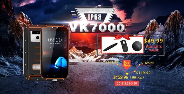 Смартфон vkworld VK7000 можно забрать в Banggood всего за $139.99Защищенный по стандарту IP68 смартфон vkworld VK7000 поступает в предпродажу на Banggood с 23-го мая всего за $139.99. Предложение ограничено 99 смартфонами, далее цена поднимется до $149,99. После 30 мая розничная цена вернется к аннонсированной производителем - $169,99: https://goo.gl/7CxVLk