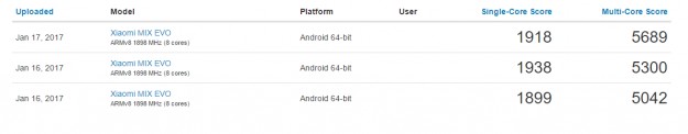 Смартфон Xiaomi MIX EVO с Snapdragon 835 SoC засветился в GeekbenchТестирование производительности в популярном бенчмарке Geekbench прошел неизвестный ранее смартфон компании Xiaomi под кодовым названием MIX EVO.