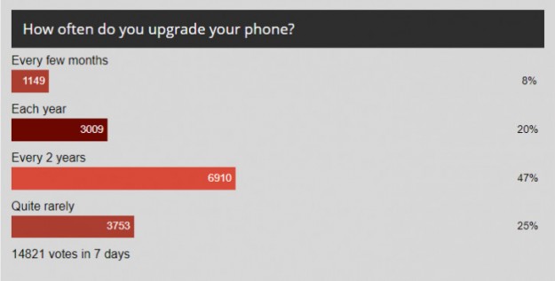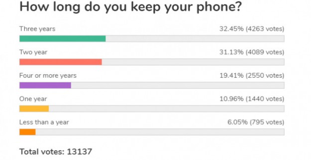 Это подтверждается и новым опросом, проведённым тем же изданием на схожей выборке в 13 137 человек: больше половины из ныне опрошенных (52%) предпочитают не менять смартфон в течение трёх и более лет и лишь 11% делают это раз в год. Эта тенденция может быть связана с тем, что люди не имеют большого желания переплачивать за минорные обновления в и без того качественных камерах и железе, а также с растущими ценами на устройства и, временами, исчезающими фишками (вроде 3,5-мм разъёмов).