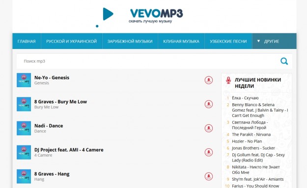 Популярный сайт VevoMP3.NET завоевал сердца поклонников благодаря удобному интерфейсу и многочисленной функциональности. Данный портал позволяет не только клубные треки 2019 скачать бесплатно, но и делиться ими с друзьями в социальной сети, а также сохранять музыку на своем устройве и таким образом пополнять свою музыкальную коллекцию. Особенности встроенного аудиоплеераПлеер на VevoMP3.NET работает обычно с битрейтом 320 кбитс. Программное обеспечение имеет интуитивно понятный интерфейс, приближенный к официальному плееру социальных сетей и других мобильных приложений. Ничего лишнего и нагружающего нет. Теперь искать, скачивать и делиться друзьями с музыкой можно всего в пару нажатий.
