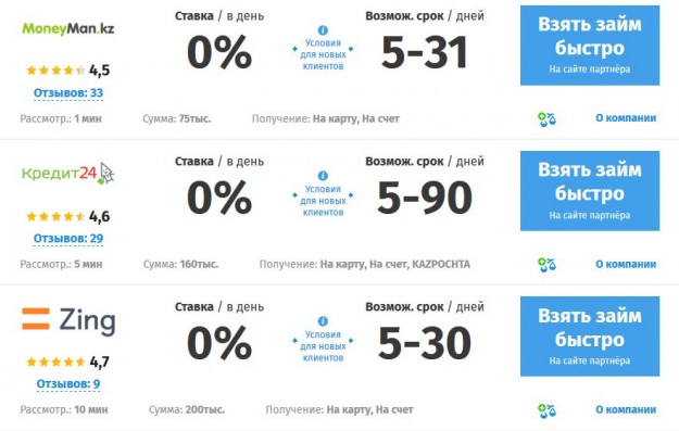 В каждой стране есть люди, которые хотели бы купить себе новый смартфон или другую технику, а возможно и просто услугу, на которую прямо сейчас нет наличных денег. Или банковская карточка путая до ближайшей зарплаты… Решение этой ситуации в самый короткий срок – взять займ онлайн. Такую услугу предоставляет сервис Zajmonline. Но наиболее выгодно, если кредит берется впервые. Тогда имеет смысл искать то место, где первый займ без процентов, а значит меньше затрат и выгоднее условия. Сами убедитесь в этом по указанной нами ссылке. Сумма, выдаваемая таким образом, может быть не очень высокой, но ведь можно послать запрос в несколько учреждений одновременно. Такие предложения есть у микрокредитных организаций: Кредит24, MoneyMan, Zing, ccloan, Банкастаны и др. Как видите, выбор большой. Заявку рассматривают за 1-10 мин., срок кредитования – от 5 до 90 дней, а ставка – 0% в день.