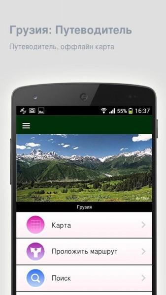 SMARTlife: Путеводитель, карты, справочник Грузии и разговорник на AndroidВпереди лето, а значит, самое время выбрать страну, где провести весну, лето и осень. Прекрасным вариантом для удачного путешествия может стать Грузия. В данном материале портал Smartphone.ua предлагает разобраться в приложения, которые смогут помочь каждому владельцу смартфона. Выберем путеводитель, удобный разговорник и карты Грузии. Грузия: Путеводитель офлайн – софтинка с русским интерфейсом, которая должна помочь владельцу умного телефона всегда иметь при себе справочник Грузии. Это все бесплатно и удобно. При этом приложение работает даже без подключения к сети интернет. Внутри программы огромное количество информационных материалов и фотографий, которые смогут понять, в каком месте мы сейчас находимся и куда нужно двигаться. О каждой достопримечательности подробно расписано все, что может рассказать вам профессиональный экскурсовод. На данный момент программу скачало только 500 человек, но ведь и разработчики выкатили свой продукт только в январе 2017 года. Пользователь может задать нужный маршрут и указать, как он будет двигаться – на двух своих ногах или на авто, которое взято в аренду. В отдельной вкладке можно найти мотель, отель, кафе, клуб или ресторанчик. https://play.google.com/store/apps/details?id=com.mobomap.cityguides1468