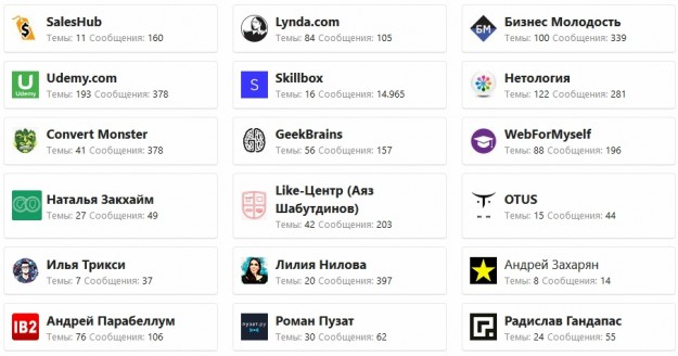 - Бизнес и маркетинг (Инфобизнес, «папа бренда» от Федорива, Курсы блогеров от Марии Солодар, Дмитрий Ковпак и его Фабрика 4.0…)