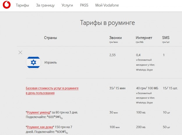 Помимо прочего в поездке будем пользоваться роумингом. А значит самое время сравнить предложения мобильных операторов в Украине на услугу пользования голосом и передачей данных. Если при слове Израиль вам также захотелось на отдых, заходите на сайт турфирмы «Королівські Подорожі» в раздел «Гарячі тури», где конечно же представлены Египет, Шри-Ланка, Турция и даже Гоа с ОАЭ. Особенно актуальны туры на сайте king-travel.com.ua для жителей Львова, так как это турагентство территориально расположено в этом красивом городе с большой историей. Но вернемся к роумингу. Порядок рассмотрения следующий: Водафон, Киевстар, Лайфселл. Vodafone