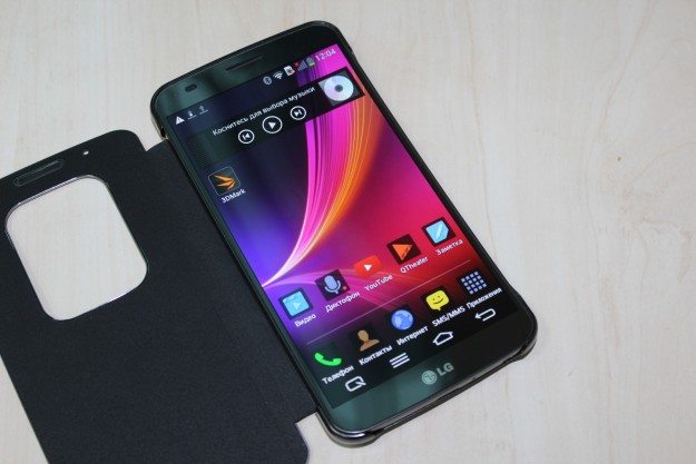 То, что «на борту» 6-дюймовый дисплей совершенно не ощущается для руки пользователя - навигация по меню вполне удобная. Функционально трубка похожа на LG G2 (обзор здесь). Вместе с тем производитель добавил несколько интересных приложений мультимедийного плана, на которых я детальнее остановлюсь уже в полноценном обзоре. Но главное отличие, конечно же, в умении сгибаться, а также тыльной панели корпуса, на которой могут «затягиваться» мелкие потертости и царапины.