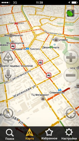 Софтовый калейдоскоп! Дорожная классика от «Яндекс-Навигатор».В огромном множестве программ с разнообразнейшими картами и схемами городов простым людям подчас разобраться довольно сложно. Скачивая очередное раскрученное приложение с анонсированными супер-возможностями, уверенным в том, что оно идеально подойдет любому автомобилисту, быть нельзя. Именно поэтому знающие пользователи, наученные горьким опытом «общения» с такого рода программами, предпочитают старую добрую классику. Среди которой приложение «Яндекс-Навигатор» - признанный лидер хотя бы потому, что его разработчики занимаются виртуальным делом картографирования уже без малого лет десять, и множество интересных «фишек», которые клонируются затем во всех приложениях-навигаторах, было придумано именно ими. То, что в работе с «Яндекс-Навигатором» серьезных проблем не возникнет даже у ребенка, становится понятно сразу же после загрузки программы. Автоматически (через интернет-соединение) определив месторасположение пользователя (вариант автономной работы предусмотрен только после предварительной загрузки кэш-информации о родном городе – вне сети будут показываться только пробки и поиск заведений), «Яндекс-навигатор» загрузит «народную» карту, переключить которую на схему или спутниковый вид можно через специальное меню. Собственно, через это всплывающее меню (его можно найти в правом нижнем углу в категории «настройки») и ведется вся оперативно-навигационная работа. В нем находится ряд стандартных категорий, которые в любое время можно без проблем настроить на свой вкус. Помимо типа карты и автоматического определения севера в меню «Дорожные события» можно включить все фирменные яндексовские вспомогательные фишки: места ДТП и дорожные работы, веб-камеры и перекрытия, и, конечно же, любимые приколистами «Разговорчики». Отметить на карте то или иное событие тоже несложно – для этого достаточно нажать на располагающийся прямо на карте прозрачный значок с плюсиком. В настройках также можно выбрать автоматическое затемнение карты в ночное время суток и голос (мужской или женский), который помогает ориентироваться во время прокладки маршрута. Отсюда же через меню настроек производится и все управление картами (на выбор предоставляется возможность скачивания всех более или менее значимых мегаполисов России, Украины и Казахстана). Их можно добавить себе на гаджет как в полном режиме - со всевозможной информацией о городе, так и в обзорном варианте. Стоит отметить, что полные карты довольно большие по своему размеру и загружать их стоит аккуратно, ориентируясь на объем доступной памяти смартфона. После скачивания всей доступной информации о том или ином городе, данные можно спокойно вынести на карту-схему через меню «Поиск» (оно находится слева во всплывающем меню). И чего тут только «Яндекс-Навигатор» не предлагает: кафе-рестораны, аптеки, магазины и салоны, банкоматы, кинотеатры и прочее важное в любой городской инфраструктуре. Всю необходимую информацию, расположенную на виртуальной карте, можно сохранить в приложении через меню «Избранное». Отдельного упоминания достойна и возможность построения маршрута из точки «А» в точку «Б»: она в «Яндекс-Навигаторе» «адекватна» на все 100 % - учитывает специфику местности и улиц и даже предлагает альтерна
