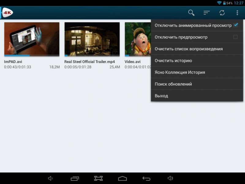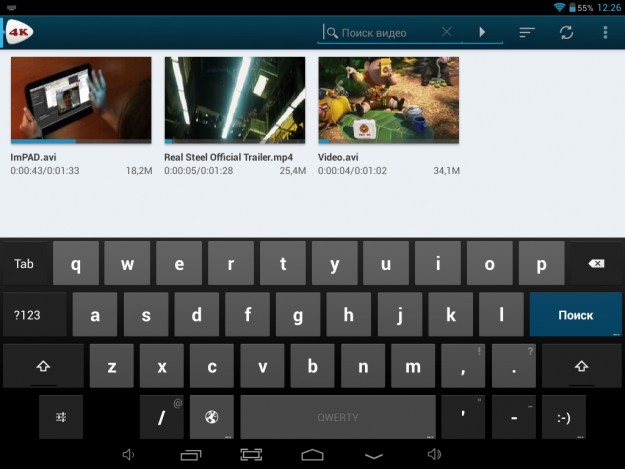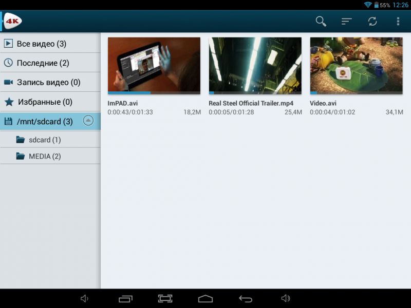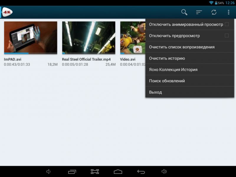 Софтовый калейдоскоп! Обзор приложения 4KPlayerЛюбопытная программа, представляющая собой каталог и просмотрщик видео в одном «флаконе». Ключевая возможность - вынос видеокартинки поверх остальных окон. Впрочем, только этим особенности ее не ограничиваются. Обзор приложения подготовлен с использованием планшета Impression ImPad 2313. Интерфейс меню довольно прост. Все «функциональные элементы» вынесены на верхнюю часть окна и сосредоточены на одной строчке. Нажав на кнопку слева, обозначенную красным «4K», пользователь получает доступ к некоего рода каталогу, в котором можно посмотреть все видео, хранящееся в памяти устройства, либо же ознакомиться с последними добавленными файлами, избранными и т.д. Напротив упомянутой клавиши расположены четыре другие. За что они «отвечают», угадать не составит труда, даже бегло взглянув на их маркировку: «поиск», «сортировка», а также «обновление» и «настройки». В последнем можно отключить анимированный просмотр и предпросмотр, очистить список воспроизведения, а также историю и пр. Уже во время воспроизведения пользователь может добавить видео в избранные, перейти в корневой каталог, «растянуть» его по своему предпочтению, а активировав подменю, обозначенное миниатюрным зубчатым колесиком, получить доступ к настройкам режима повтора, работы с субтитрами, активации так называемого «3D режима» и пр. К слову, последнее не позволяет запустить возможность 3D - просмотра, а лишь настраивает сенсорные ползунки регулировки подсветки и громкости для удобства. Что же относительно кнопки, позволяющей «вынести» изображение поверх остальных приложений, то она расположена в правом верхнем углу. На мой взгляд, очень практичная и удобная «вещь» в случае, если вам необходимо ответить на письмо, но вы не хотите прерывать просмотр фильма. С поддерживаемыми форматами все просто - проигрыватель «всеяден» и даже видео высокого разрешения ему по силам. Единственное, что не понравилось лично мне, - плеер «не видит» файлы на носителе, подключенном посредством USB-кабеля. В остальном же перед нами удобное и практичное решение, не потребляющее много ресурсов вашего «мобильного друга». Сергей Решодько Джерело: SmartPhone.ua Обговорення новиниКоментариев пока никто не оставил. Станьте первым! Попередні новини
