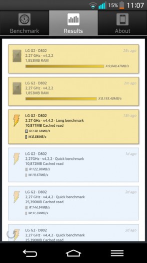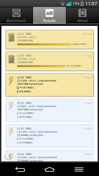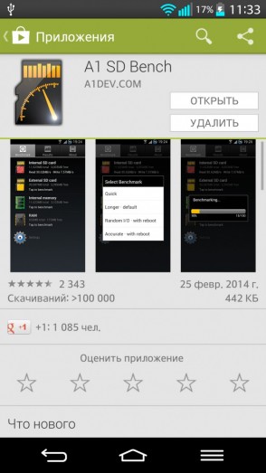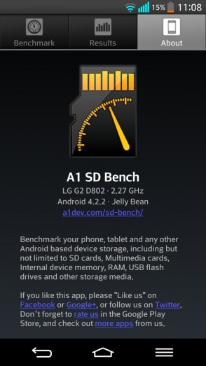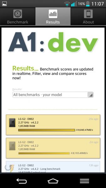 Софтовый калейдоскоп! Обзор приложения A1 SD BenchПростая и главное бесплатная утилита для тестирования скоростей записи/считывания информации как на встроенных накопителях в смартфонах или планшетах, так и на подключаемых. Впрочем, только этим дела не ограничиваются. Приложение протестировано с помощью смартфона LG G2, с детальным обзором которого я знакомил наших читателей здесь. Как уже упоминалось, A1 SD Bench является бесплатной утилитой. Объем apk. 442 КБ. Также приятно, что в меню не предусмотрены ни встроенные покупки, ни реклама, а сам интерфейс предельно прост и понятен. Маленькая оговорка - для корректной работы приложения необходимо подключение к Интернету. Структура самого интерфейса следующая. Имеется три горизонтально расположенных подпункта и три вертикально. Количество последних, впрочем, увеличивается пропорционально подключенным внешним накопителям, но не более чем на два - карта памяти плюс USB-флэш. Однако поскольку тестирование A1 SD Bench проводилось на смартфоне LG G2, в котором нет слота для карт памяти, подключал я только флэшку. Горизонтально ориентированные подменю - это непосредственно сам бенчмарк и подпункт, в котором содержится статистика протестированных на смартфоне накопителей и их данные, плюс несколько строк о самом приложении. Кстати, кроме информации о нем самом, здесь есть несколько строк подсказок о названии модели смартфона, а также редакции операционной системы, под управлением которой он работает. Кроме встроенной пользовательской памяти, а также подключаемых решений, при помощи A1 SD Bench можно протестировать пропускную способность оперативной памяти. Все предельно удобно - внизу каждого теста высвечиваются результаты. Как итог A1 SD Bench можно рекомендовать как надежный тестер для проверки особенностей встроенных и внешних накопителей, а также оперативной памяти Android-смартфона либо планшета. Сергей Решодько Джерело: SmartPhone.ua Обговорення новиниBaня: Oтличная программа Фрич: Пользуюсь такой уже несколько месяцев. Бомба!) Советую)! Попередні новини