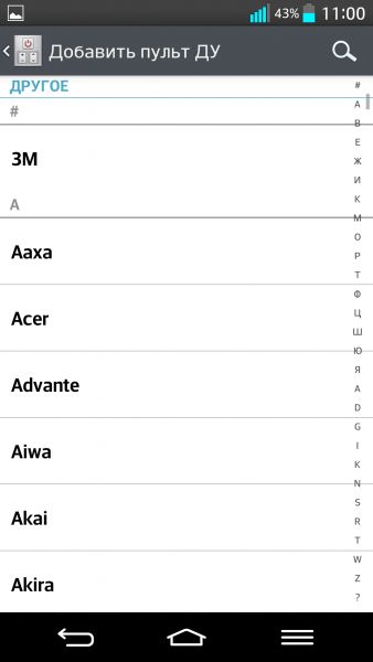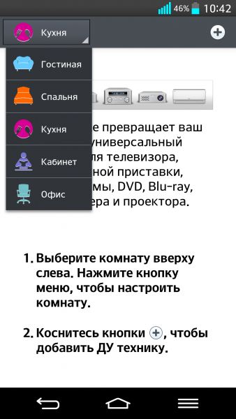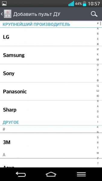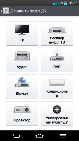 Софтовый калейдоскоп! Обзор приложения LG Quick RemoteФирменное приложение компании LG, задействовав которое, а также ИК-порт смартфона пользователь может «создать» универсальный пульт дистанционного управления. О том, как устроено оно и насколько стабильно работает, поговорим далее. Приложение протестировано на смартфоне LG G2, с детальным обзором которого можно ознакомиться по этой ссылке. Интерфейс LG Quick Remote прост и понятен даже для не очень сведущих в электронике пользователей. Перейдя в главное меню, первое, с чем придется ознакомиться, - перечень категорий устройств, с которыми «совместим» этот «пульт». Выбор велик, но даже если ни к одной из них ваш аппарат отнести не получится, переживать не стоит - разработчик предусмотрел и такую возможность. Но об этом далее.