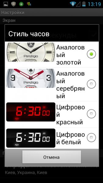 Софтовый калейдоскоп! Обзор приложения «Prestigio Часы»Во всех новых смартфонах компании Prestigio появилось красочное фирменное приложение, способно не только «подсказать» о текущем времени суток, но и отобразить данные о погоде, включая скорость ветра плюс мн. др. Давайте же познакомимся с его особенностями детальнее. Статья написана с использованием смартфона Prestigio 5501, детальный обзор которого здесь. Вместо вступления Сразу же стоит отметить - на данный момент «Prestigio Часы» является неотъемлемым «элементом» для всех смартфонов одноименного производителя. На Google Play его нет, в той или иной мере это плохо, поскольку в функциональном плане оно ничем не уступает многим существующим аналогам, а по части дизайна даже превосходит их. Объем приложения 7,19 МБ. При желании его, как, впрочем, и любое другое на своем смартфоне, пользователь может отключить из специального подменю. Интерфейс и особенности Перейдя в главное меню, пользователь увидит большой циферблат в аналоговом формате с нанесенной на него «подсказкой» о дне недели. Помимо этого, здесь же расположены обозначения погоды, включая скорость ветра. По умолчанию задана страна, в которой находится устройство. Тем не менее, пользователь может переназначить любой город или даже населенный пункт, в котором он пребывает. Одно нажатие в любую точку экрана главного меню автоматически расширит функциональные возможности приложения. Так пользователь получает доступ к разделу, «отвечающему» за добавление и активацию будильника или будильников, для чего есть соответственная кнопка небольших размеров внизу главного меню. А вот расположенное в самом верху зубчатое колесико «откроет» доступ к подменю настроек. О нем далее. Настройки и возможности Помимо кнопки в виде зубчатого колесика перейти в главное меню можно, нажав на контекстную кнопку на смартфоне. Все настройки здесь разделены на четыре группы: «экран», «погода», а также «расширенные» плюс «помощь и обратная связь». Первая группа отвечает за настройку отображения часов как таковых. Легко заметить, что пользователь может отключить отображение секунд, дней недели и пр. Но самое интересное здесь это возможность выбора стиля часов. По умолчанию настроен «Аналоговый золотой», однако пользователь может активировать «Аналоговый серебряный», «Цифровой красный» либо «Цифровой белый». Лично мне больше понравились два первых - выглядят далеко не так, как это сделано у конкурентов. Удобной показалась возможность регулировки яркости подсветки дисплея во время пребывания в главном подменю. Для этого в меню имеется специальный подпункт «Проведите по экрану, чтобы настроить яркость». Для того, чтобы эта особенность приложения заработала, необходимо лишь выставить галочку напротив. Вторая группа настроек позволит выбрать город, в котором находится пользователь, температурную шкалу, а также единицу скорости ветра. Кроме всего упомянутого, можноотключить отображения погоды в главном меню. На особенностях группы «Расширенные», откровенно говоря, акцентироваться нечего - здесь все предельно понятно уже хотя бы из «подсказок», расположенных под каждым из пунктов. Последняя категория настроек «Помощь и обратная связь» - это «подсказки» для тех, кто не разобрался. Хотя, на мой взгляд, приложение в освоении легкое даже для тех пользователей, 