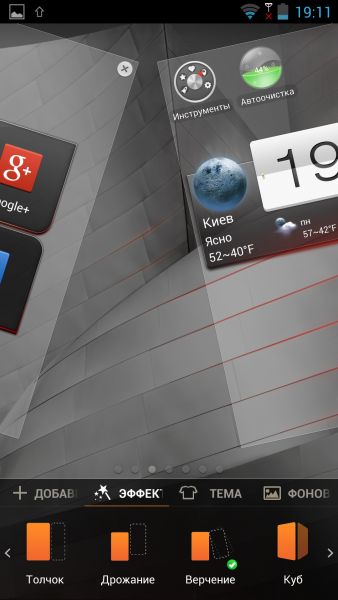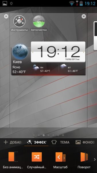 Софтовый калейдоскоп! Приложение от производителя - Lenovo LauncherЧем интересна фирменная оболочка Lenovo для смартфонов и насколько конкурентно данное решение на фоне аналогичных продуктов!? Обо всем этом поговорим в статье далее. Материал подготовлен с использованием смартфона Lenovo K900, обзор которого здесь. В заблокированном состоянии на центральном рабочем столе пользователь увидит большой циферблат, а также обозначение даты и времени, а чуть ниже четыре иконки разблокировки, реализованные в формате тюльпана. Три иконки позволяют сразу же перейти в то или иное подменю, а четвертая попросту разблокировать управление смартфоном. Если управление заблокировано, пользователь может передвигаться по рабочим столам оболочки. Здесь все просто. После нажатия кнопки разблокировки справа и слева появятся два вертикально ориентированные поля. Если пользователь нажмет пальцем на то, что расположено справа, он, таким образом, сможет быстро запустить камеру. Ну а если нажмет на левое поле и затем словно листик книги «перевернет» его в правую сторону, таким образом, он сможет получить доступ ко всем рабочим столам оболочки. Но вот с выносом виджетов или ярлыков здесь дела несколько ограниченны - пользователь, дойдя до последнего рабочего стола, сможет получить доступ лишь к нескольким виджетам сервисов компании Google. Более широкие возможности пользователь получает после разблокировки управления. Изначально необходимо совсем немного - активировать специальный редактор. Сделать это очень просто - достаточно лишь поставить палец на рабочий стол, который не обременен виджетами, ярлыками или папками, и удерживать несколько секунд. Чем интересен редактор!? Прежде всего, он позволяет увеличить количество рабочих столов до девяти или уменьшить до трех. Кроме того, в самом низу редактора имеется небольшая, но весьма функциональная панель. Разделена она на четыре своеобразные подменю: «добавить», «эффекты», а также «тема» плюс «фоновое изображение». Перейдя в «добавить», пользователь получает возможность вынести на конкретно взятый рабочий стол приложение, ярлык, папку, а также виджет «волшебная погода» плюс «автоочистка», «инструменты», «клевер» и пр. Три последних - технические инструментарии. О них ниже. О первых трех, уверен, говорить особо нечего. А вот «волшебная погода» представляет собой виджет с прогнозом погоды в конкретном городе любой из стран мира. Изначально предоставлен список азиатских стран, но лично мне не составило труда по поиску найти столицу Украины. «Автоочистка» - это достаточно простой в использовании, но вместе с тем эффективный инструментарий для высвобождения оперативной памяти. Очень удобная вещь для оптимизации процессов. А вот «Инструменты» позволят получить быстрый доступ к профилям настройки работы, будильнику, приложению-оптимизатору автономности «Питание Lenovo» и пр. Как видим, на рабочем столе оно обозначено как миниатюрная кнопка. Но если коснуться его, «выпадает» небольшая панель в формате пяти ярлыков, которые и обеспечивают доступ к тому или иному техническому подменю или приложению. И последнее «Клевер». Здесь можно вынести несколько виджетов, которые впоследствии будут «обрамлены» рамкой, похожей на лепестки клевера. Стоит также отметить, что внешне этот лепесток клевера похож на тот, что «встрети