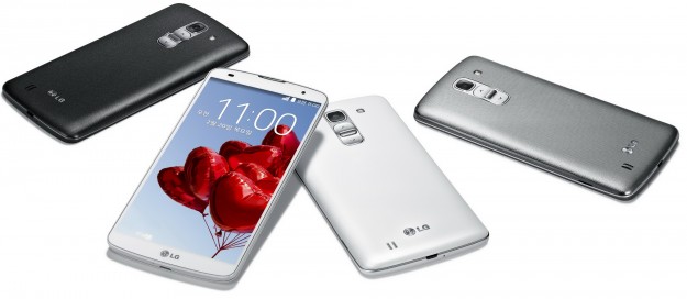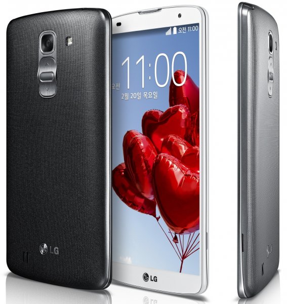Дизайн новинки напоминает внешность флагмана LG G2. Дисплей занимает 77,2% площади фронтальной панели фаблета и имеет рамки толщиной 3.3 мм. Аппарат получил от производителя 5.9-дюймовый IPS дисплей с разрешением 1920х1080 точек, плотность пикселей на дюйм 373 ppi, 4-ядерный процессор серии Snapdragon 800 от Qualcomm с тактовой частотой 2.26 ГГц и графикой Adreno 330, 3 ГБ оперативной памяти и 16/32 ГБ внутренней, которую можно расширить с помощью карт памяти формата microSD.