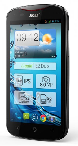 Acer Liquid E2 – 4-ядерный смартфон с IPS-дисплеем, 8Мп камерой и поддержкой dual-SIMАнонсированный компанией Acer новый смартфон Liquid E2 является продолжением линейки мобильных терминалов Acer серии E, визитной карточкой которой стали дисплеи на основе матрицы IPS с диагональю 4,5 дюйма, большой объем оперативной памяти, стереодинамики и поддержка двух SIM-карт.
