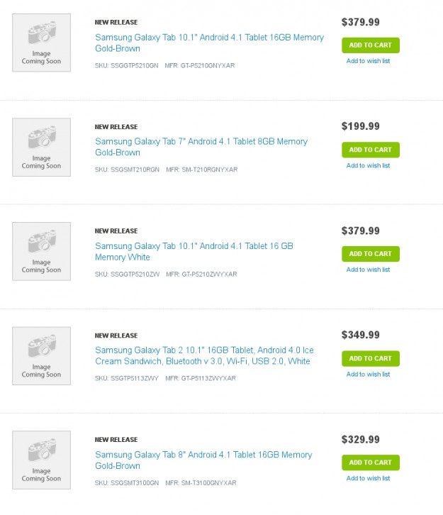 Стала известна стоимость планшетов Samsung Galaxy Tab 3 8.0 и 10.1Ранее в этом месяце американский онлайн-магазин электроники Adorama первым опубликовал на своем сайте стоимость нового Samsung Galaxy Tab 3 7.0, а сегодня он представил ценовые бирки еще двух неанонсированных новинок — Galaxy Tab 3 8.0 и 10.1. Galaxy Tab 3 8.0 с 16 ГБ встроенной памяти будет продаваться по цене $329.99. Среди технических характеристик планшета называют 8-дюймовый дисплей с разрешением 1280х800 пикселей, 1.5-гигагерцовый двухъядерный процессор, 1.5 ГБ оперативной памяти, слот для карт microSD, аккумулятор емкостью 4450 мАч, 5Мп основную камеру и 1.3Мп фронтальную, модули Bluetooth 4.0, Wi-Fi 802.11 a/b/g/n и A-GPS.