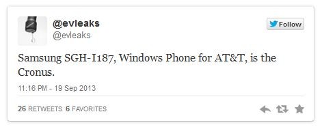 Стали известны новые подробности о WP8-смартфоне Samsung "Cronus"Известный twitter-аккаунт @evleaks опубликовал информацию о том, что корейская компания Samsung готовит для американского оператора сотовой связи AT&T смартфон под кодовым названием "Cronus".