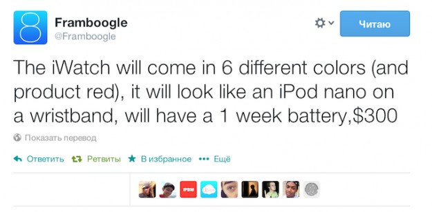 Стали известны спецификации и стоимоcть Apple iWatchTwitter-аккаунт @Framboogle, известный своими публикациями о неанонсированных устройствах компании Apple, опубликовал на своей странице в сервисе микроблогов некоторые подробности, касающиеся не представленных еще официально "умных" часов Apple iWatch.
