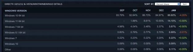 Steam опубликовала свежий отчёт Steam Survey. Согласно нему, популярность Windows 11 среди пользователей сервиса растёт ударными темпами.