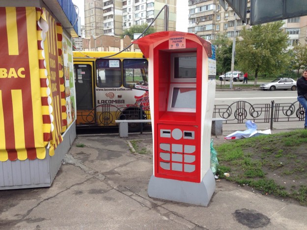 СТОП-кадр! Автомат пополнения счета с самодельным козырькомВот такой вот забавно выглядящий автомат пополнения счета на одной из киевских улиц был замечен нашим журналистом.