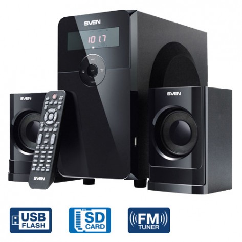 SVEN представила новую мультимедийную акустическую систему 2.1 – SVEN MS-2000Главная особенность данной модели – это возможность использовать ее как автономный музыкальный центр. В корпусе сабвуфера расположены разъемы для подключения USB flash и SD card. Встроенный проигрыватель позволяет воспроизводить композиции с портативных накопителей памяти напрямую, не используя при этом ПК. Сабвуфер оборудован также FM-тюнером. Система способна запоминать более тридцати радиостанций. Адаптировать звучание под тот или иной жанр помогают эквалайзер и настройка тембра.