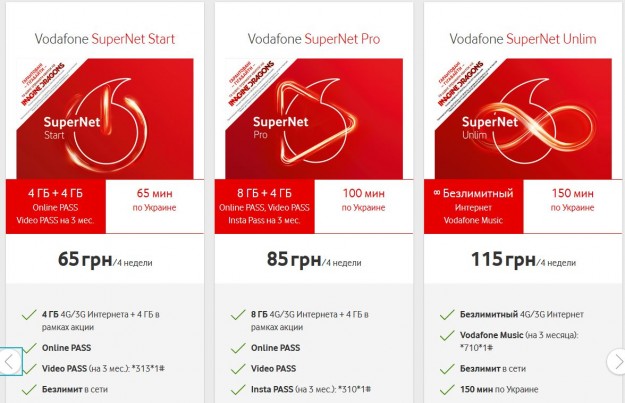 Vodafone SuperNet Start - цена 65 грн за 4 недели