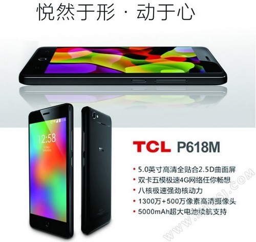 Что касается остальных технических характеристик, то TCL P618M оснащен 5-дюймовым AMOLED-дисплеем из гнутого стекла 2.5D с разрешением 1280х720 пикселей, 64-битным 8-ядерным процессором MediaTek MT6752 с частотой 1.7 ГГц и графикой Mali-T760, 1 ГБ ОЗУ и 8 ГБ ПЗУ. За фото- и видеовозможности новинки отвечают 5Мп фронтальная камера и 13Мп основная со светодиодной вспышкой и системой автофокусировки. Среди модулей беспроводной связи на борту устройства присутствуют Wi-Fi 802.11 b/g/n, Bluetooth и GPS. В наличии также поддержка двух SIM-карт и 4G LTE-сетей. Работает смартфон под управлением операционной системы Android 4.4.4 KitKat. Стоимость TCL P618M пока не сообщается. Джерело: SmartPhone.ua Обговорення новини