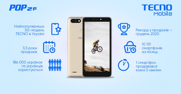 TECNO Mobile прощається з найпопулярнішою моделлю: 186 тисяч українців вже придбали цей смартфонУ вересні 2022 року TECNO Mobile продала останню модель ультрабюджетного POP 2F зі свого дистриб’юторського складу. В даний момент останній запас цих пристроїв закінчується у магазинах партнерів компанії. Андрій Дерев'янко, Директор з продажів TECNO Mobile в Украіні, згадує про першу найбільш масову 3G-модель бренду на українському ринку та ділиться планами на 2023. “POP 2F був дуже популярним пристроєм, продажі якого розпочалися в Україні у вересні 2019 року і тривали майже 3,5 роки. Протягом цього часу понад 186 000 українців та українок придбали цю модель. Максимальний попит на неї зафіксували у грудні 2020 року, коли продалося 10 131 одиниць на місяць, що становить приблизно 327 одиниць на день, або трохи більше, ніж 1 одиниця кожні 5 хвилин протягом доби.” - Коментує Андрій.