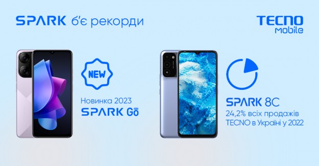 Зараз TECNO Mobile активно просуває на українському ринку інші моделі смартфонів, зокрема лінійку SPARK у сучасних дизайнах та із посиленими характеристиками. Всі смартфони серії SPARK — це вже пристрої із підтримкою швидкісного інтернет-стандарту 4G LTE. Так модель SPARK 8C, що за обсягом становить майже чверть усіх продажів (24,20%) серед смартфонів TECNO Mobile в Україні у 2022 році, має високу популярність серед користувачів завдяки HD+ екрану, оперативній пам’яті 4 Гб, наявності NFC та батареї ємністю 5000 мАг.