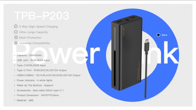 Power Bank стає важливим аксесуаром у сучасному світі, де люди постійно в дорозі та мають бути на зв’язку 24/7. Обидві моделі отримали яскраві індикатори зарядки, можливість заряджати 2 девайси одночасно та сумісність із широким спектром пристроїв. Компанія також подбала про те, щоб Power Banks були оснащені функціями безпеки для захисту пристроїв від перезарядки, короткого замикання та коливань напруги. Power Bank TECNO 20000mAh 22.5W Black (TRB-P203)