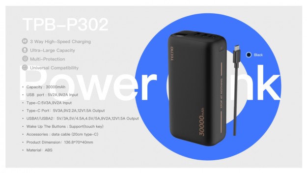 Power Bank TECNO 30000mAh 22.5W Black (TRB-P302)